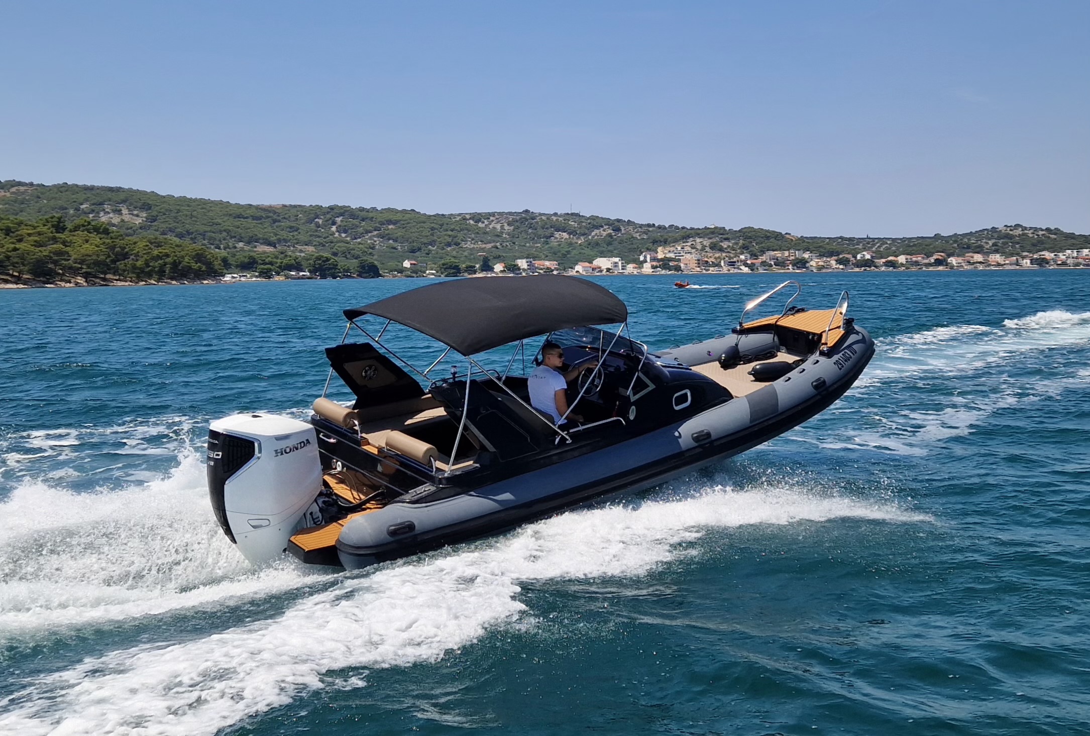 Aquamax 27 Offshore 2025 is a high-performance 8+ meter RIB powered by an impressive 350 HP engine, delivering exceptional speed, stability, and comfort on the Adriatic Sea. Perfect for renting a boat in Tisno, this premium model is ideal for exploring Murter, Vodice, and the spectacular Kornati Islands.