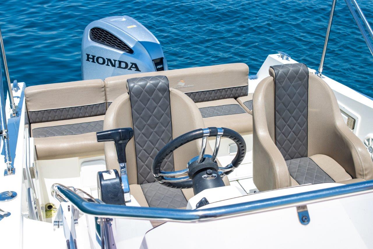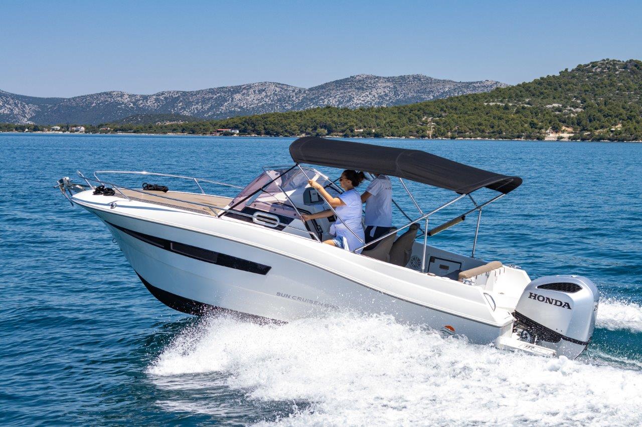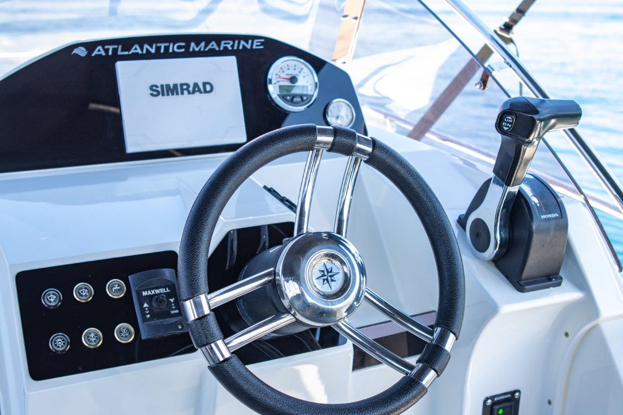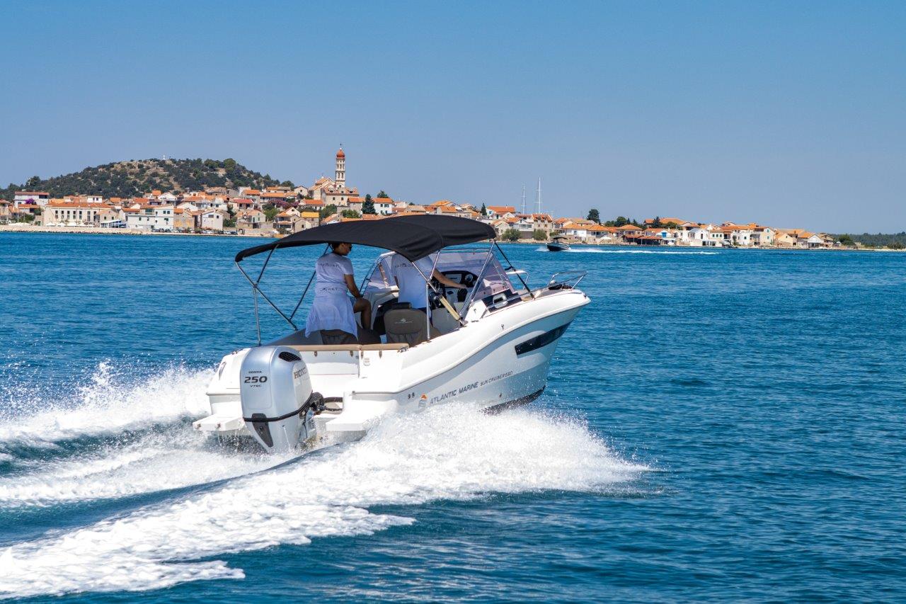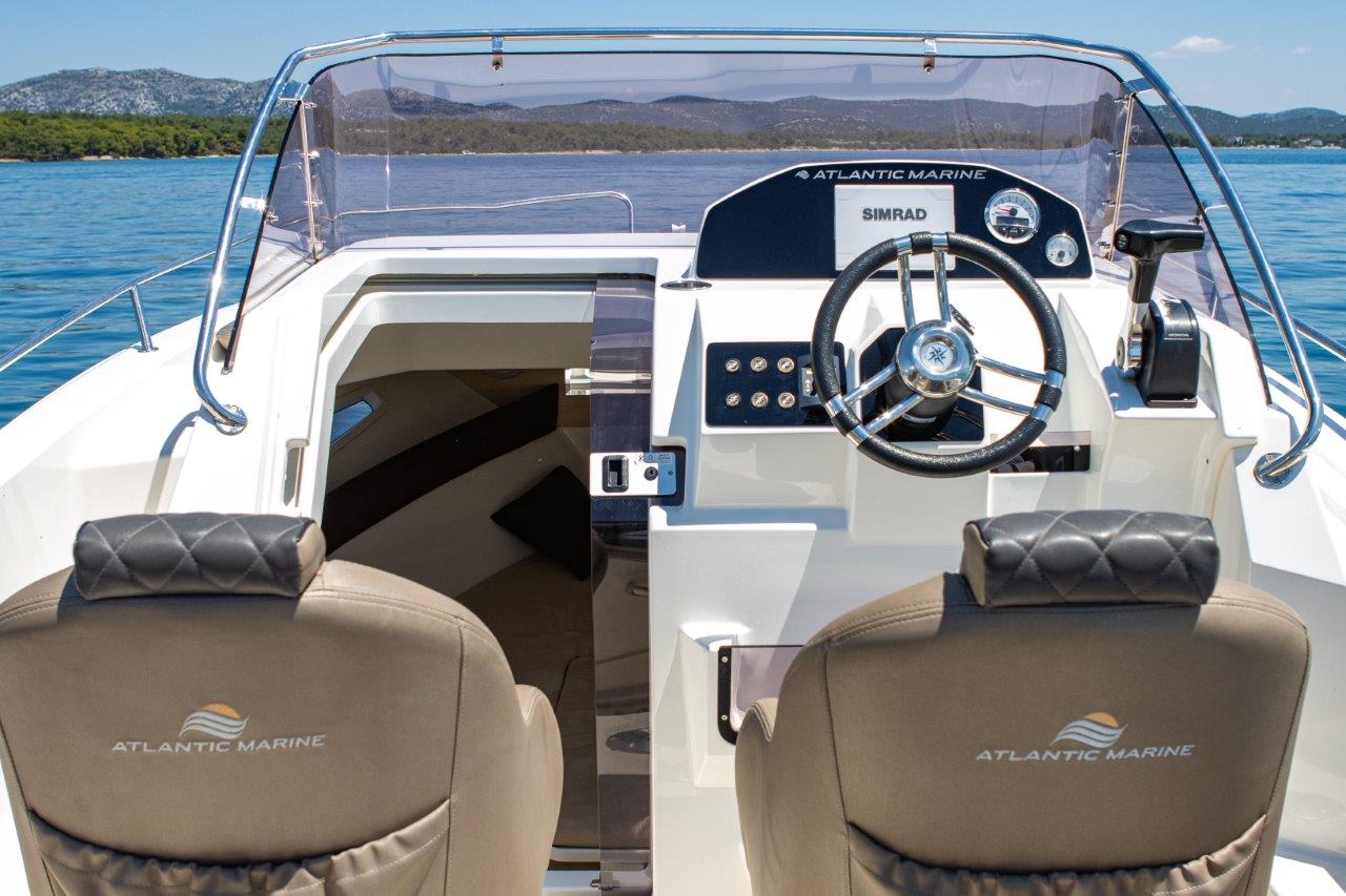 The Atlantic Marine Sun Cruiser 690 is a versatile and modern motorboat ideal for day trips, coastal cruising, and weekend getaways. Featuring a spacious deck with sunbathing areas, a comfortable cockpit, and a well-designed cabin for up to three persons, it delivers both functionality and relaxation. Powered by up to 250 HP and accommodating up to 7 people, this boat ensures a smooth, safe, and enjoyable ride on the water.