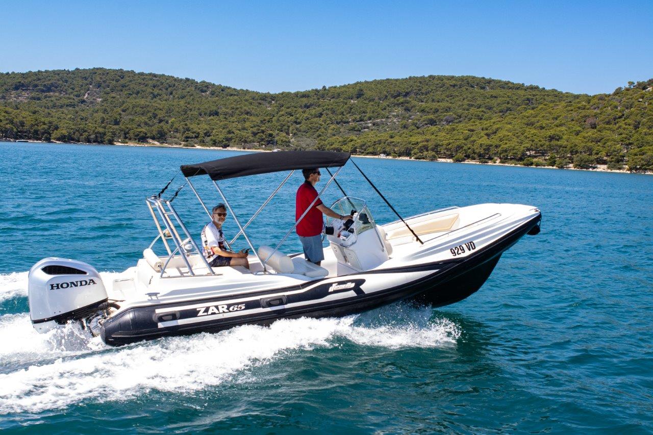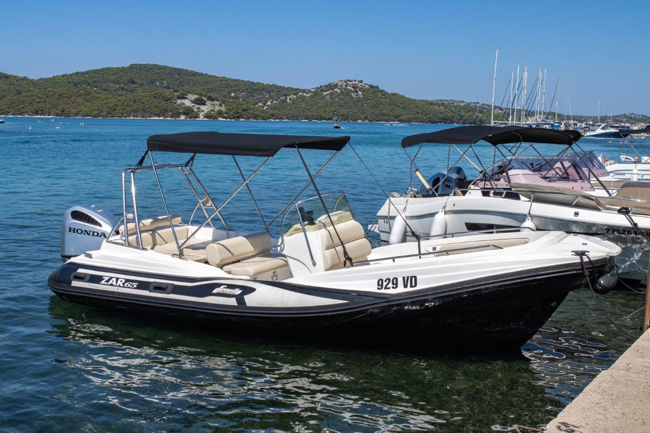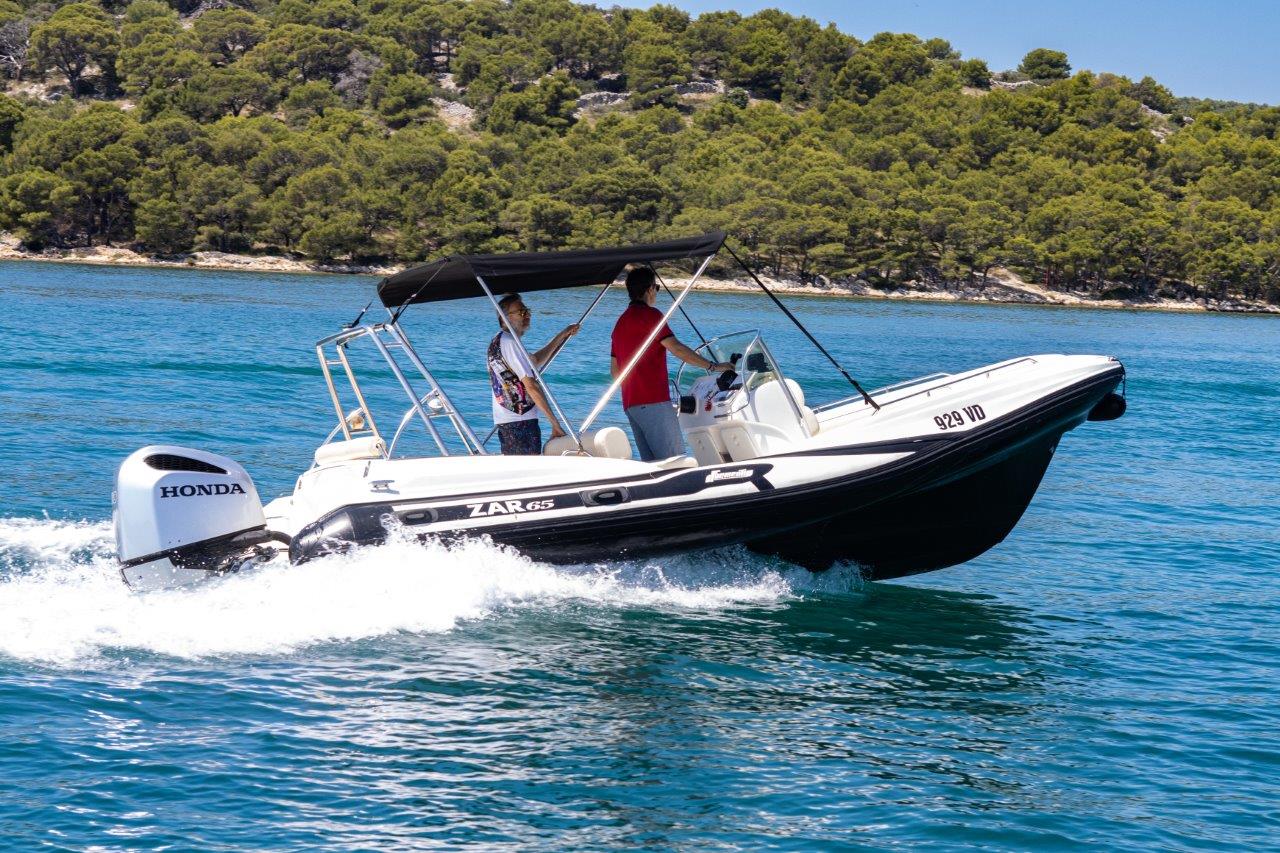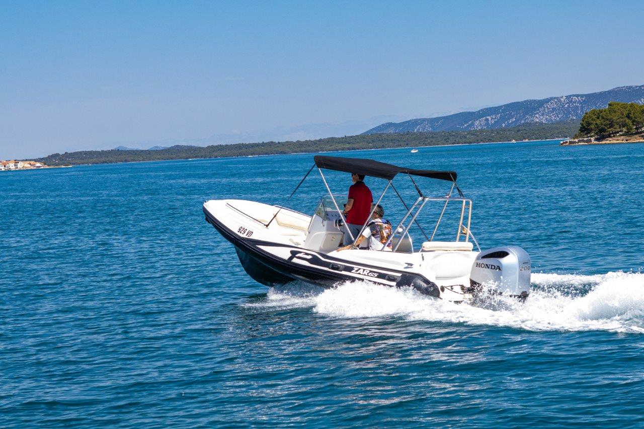 The ZAR 65 is a premium RIB boat for rent in Tisno, Murter, and Jezera, known for its exceptional stability at sea and superior performance. Its advanced hull allows for calm and safe sailing even in rough seas, making it an ideal choice for carefree exploration of the Adriatic coast and islands.